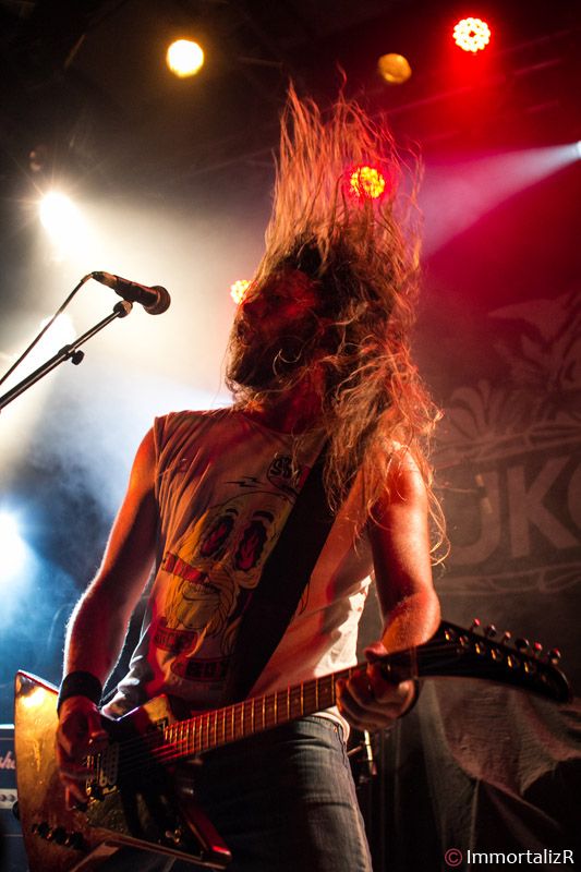 Pour finir avec Bukowski, le groupe a bien changé depuis leur date au Furia Sound Festival en 2009. Le bébé tigre a grandi mais sans pour autant gagner en maturité. Techniquement c’est carré, mais je dois avoir un problème avec la voix et le manque de risques dans les compositions et dans le rythme. Des titres comme Fever ou The Mase illustrent mes propos. Un peu déçu par leur prestation, nous n’avons pas perdu notre soirée et pu apprécier le spectacle et le featuring avec The Arrs sur Mysanthropia (meilleur moment du concert pour ma part). Le public en a eu pour son grade, au vu du bordel qui se tenait dans la fosse.