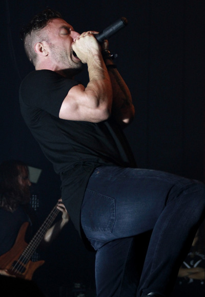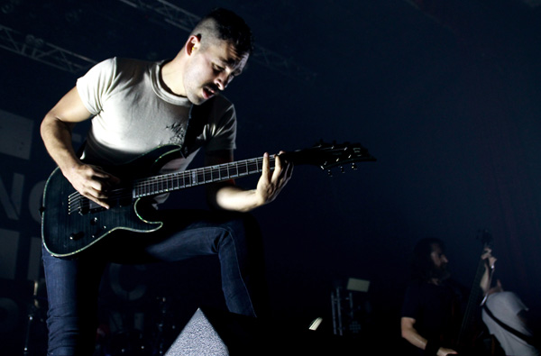 Véritable tornade, renversant tout sur son passage (et manquant presque d’assommer les photographes à coups de manches de guitares), Dillinger Escape Plan a mis le feu au Krakatoa. Bon, pas au sens littéral du terme comme le groupe a son habitude (pour des raisons de sécurité, « cracher du feu » fut interdit). Le décor se compose d’une toile tendue avec le logo du groupe en fond, et d’écrans postés sur les côtés. Malheureusement, suite à un souci technique nous n’avons pas pu profiter de ces écrans…
