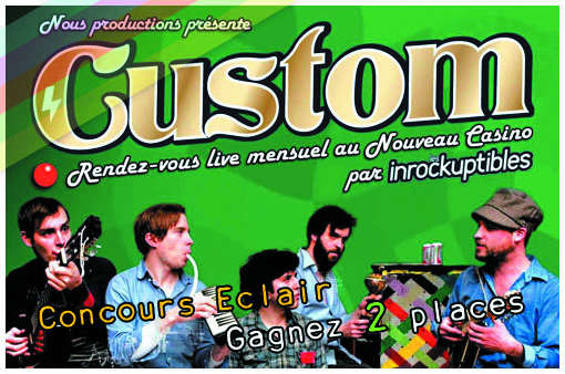 Nouveau concours express, toujours pour les amateurs de musiques actuelles, Nous Productions s’associe à ADN Sound pour vous faire gagner 2 places pour la soirée Custom du jeudi 27 mai 2010.