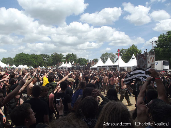 Après ce spectacle aussi impressionnant qu’inattendu, il a fallut encore une fois tenter de pénétrer le chapiteau accueillant les deux scènes Altar et Temple. C’était perdu d’avance, on a du rester à l’extérieur. Coïncidence ou non, c’est aussi avec des flammes que nous ont accueilli nos Suédois barbus. Effets pyrotechniques impressionnant, jeux de lumière de grande qualité, le tout combiné au son puissant du death-viking. Époustouflant de loin, de près le show a tout bonnement du être inimaginable, pour peu qu’on aime l’ambiance légèrement sur-testostéronée que les viking ont imposé. Au recueil des témoignages le meilleur show de la journée avec celui de Megadeth. Ainsi ce conclue notre première journée au Hellfest.