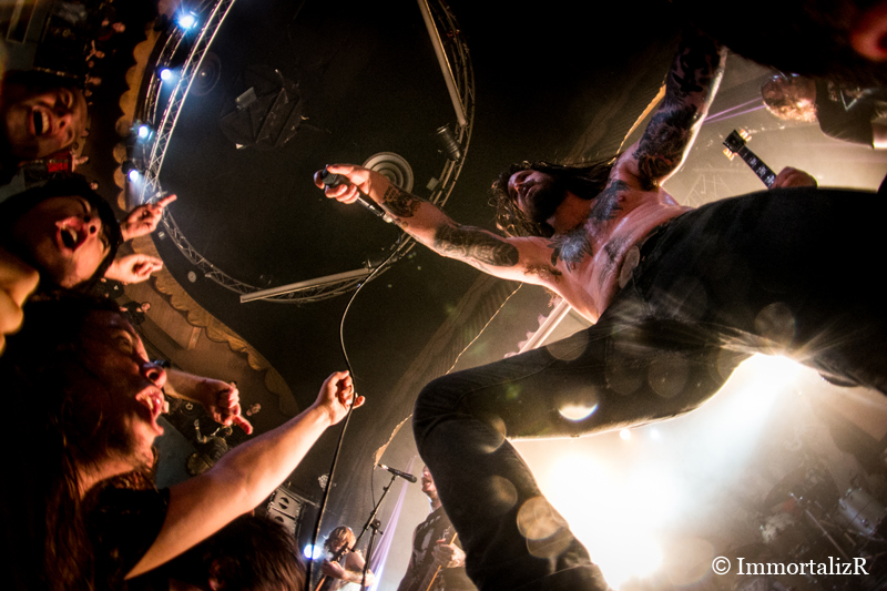 A peine les premières paroles chantées, le public est en transe et la fosse monte en température. C’est un réel contraste avec les formations précédentes. La communication avec le public et la réciprocité est présente. L’atmosphère est comparable aux concerts que donnent le viking metal d’Amon Amarth. La scène est livrée au public voulant s’offrir un plongeon dans une marée humaine très agitée pour un dimanche soir. C’est d’ailleurs Erlend le chanteur qui inaugurera en sautant lourdement dans le public.