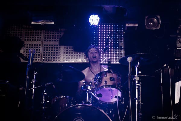 Deuxième groupe à passer, nous avons fait la découverte du duo Blackfeet Revolution, formation parisienne dont l’univers oscille entre le Stoner et le Blues Rock. Portée par la batterie bucheronne mais non moins technique de Fred Wissler Ricci, à grand coups de riffs imparables la guitare de Benoît Portolano trouve rapidement le chemin de nos oreilles. Avec en prime ce petit côté popisant qui donne à la voix de Benoît un caractère plus addictif encore, les deux parisiens ont largement de quoi se faire une belle place au soleil et ne devrait pas manquer de jolies groupies dans les mois qui viennent !