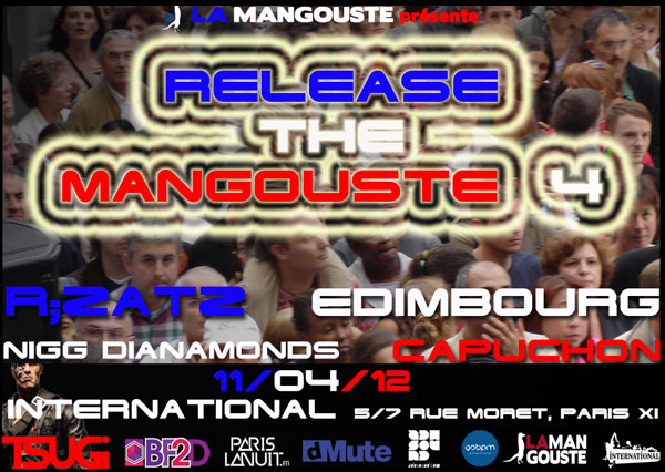 La Mangouste est de retour en partenariat avec Adnsound ! l’Herpestinae, de son petit nom scientifique, nous propose le mercredi 11 avril 2012 à l’International un plateau « plus riche en testostérone tu meurs » avec :