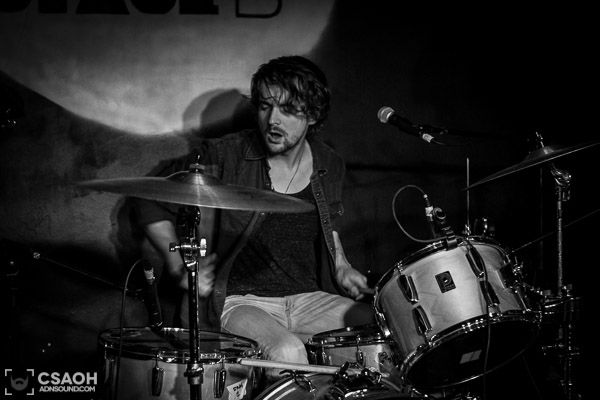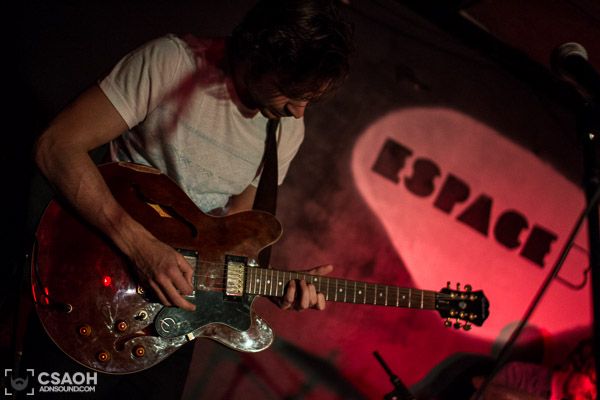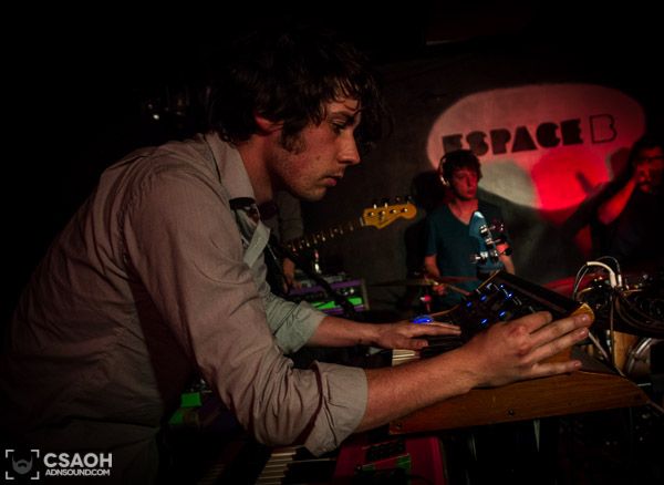 Les Royal Canoe ouvrent donc le bal. Le moins que le puisse dire, c’est que les Canadiens sont ambitieux. On peut compter pas moins de cinq claviers sur scène et tout autant de micros. Le pedale-board du guitariste est plein à craquer et les deux (!) batteurs s’installent tranquillement. Résultat, c’est un peu fouilli, la petite scène de L’Espace B a bien du mal à contenir tout le monde, mais on passe un moment agréable. Le rock surf californien à la sauce grand nord se laisse écouter, une bière à la main. Ils n’ont pas la grosse tête, discutent de leurs escapades touristiques dans la capitale et se dépatouillent comme ils peuvent. A écouter dans une plus grande salle: leur son fourni, ultra travaillé et fourmillant de petits détails devrait prendre une toute autre ampleur dans un grand cadre. Surtout quand on se retrouve sur un morceau avec deux basses, deux batteries, un synthé et une guitare en même temps.
