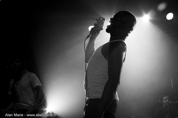 Bref que du bonheur, ça sonne et c’est même mieux que l’ablum. Le groupe enchaîne tour à tour les morceaux du nouvel et de l’ancien album. Le publique, tout comme moi, est conquit. Il faut dire que si la voix de Swaby sublime ces morceau soul-rock, son charisme écrase la salle. Dès le début du concert, il n’hésite pas a faire participer le premier rang, et à faire chanter la salle lors des refrains. Il faut le voir, débardeur blanc, jeans, le micro années 50 au cœur de la paume, se pencher dans la fosse pour hurler ses paroles a l’oreille d’un pauvre fan (qui nettoie toujours son pantalon depuis). Lorsqu’il chante, ses yeux se révulsent. Quand il danse, il ressemble a un pantin dont le corps se desarticule…Cet homme est possedé!