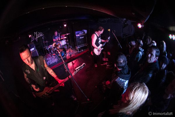 Sans même répondre il se rue devant la scène, n’aillant que faire des reproches et des personnes qu’il bouscule. Devant lui se tiennent, à la batterie « Eddie », à la guitare Nigel Bennett, ancien membres des Members et à la basse Pete Honkamaki arrivé dans le groupe il y’a quelques années. À peine les premières notes de Wrecked On You résonnent que le public et déjà dans une grande euphorie. Et THE VIBRATORS aussi. Ils sont heureux d’être là. Malgrè la joie qu’il procure, grâce à un punk maîtrisé et dans la pure tradition des années 70-80 il faut attendre la moitié du set avec Troops Of Tomorrow pour que le public se lâche. Pogos et Slam se mettent en route dans un joyeux bordel ce qui anime le groupe qui remet une couche de bonne humeur. « Eddie » nous montre même qu’après toutes ses années passées sur scène le Français ne lui fait pas peur. Au milieu de ce chaos festif il est en transe. Pour lui ce n’est pas un simple groupe qui se tient sur scène, mais de véritables légendes. The vibrators propose un set assez long de 14 chansons plutôt courtes en général, catchys, donnant envie au public de secouer la tête et de se laisser aller à la revendication et à l’anarchie. Cette prestation est d’ailleurs appuyée par des musiciens, connaissant le style dans lequel ils évoluent, maîtrisant leurs instruments à la perfection et aguerris par leurs nombreuses années sur scène. Il entendit les dernières notes de Kid’s A Mess et vit le groupe partir sous les salves d’applaudissements. À peine les vit-il sortir de scène qu’il hurla leur nom suivi d’un « We Want More ». La salle s‘empressa de le suivre. Les trois compères revinrent sur scène sous les cris du public. Il s’égosilla sur les dernières chansons Bad Time, Shaking All Over et surtout YEAH,YEAH,YEAH qui fut pour lui l’apothéose de ce concert. Il retrouva son ami au bar après une heure et demie d’un show intense. Il trinqua et, le sourire aux lèvres, s’empressa de boire une gorgée