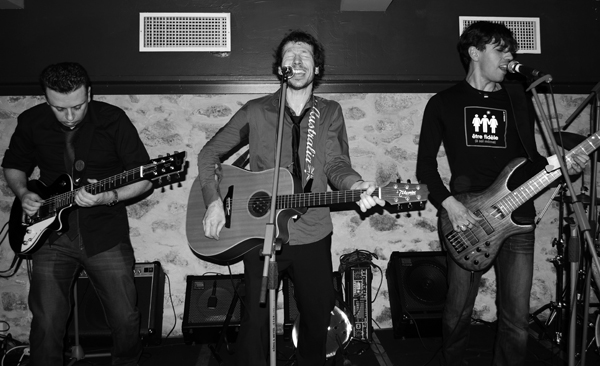 Après un premier live assuré par les Hello Elephant ! et quelques cervoises plus loin, Fabien, son mégaphone et les antidiens montaient enfin sur scène. Rien de tel qu’une présentation à la Johnny Cash et deux trois conneries pour mettre une bonne ambiance … C’est à la chanson Nicolas qu’est revenu le rôle d’ouvrir le bal, suivrons les titres présents sur leur premier EP. Ashbury, Adam & Eve ou encore A l’ouest, ont pris en live une sonorité plus brute, plus proche encore de ce qui faisait (j’emploie malheureusement le passé) la typicité du son des At the Drive In … des riffs sur la tangente, de l’énergie sous pression …