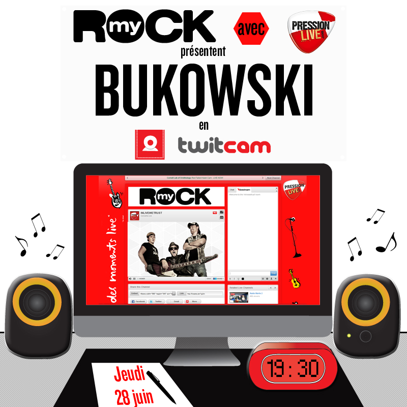 Poser ses petites questions à un groupe qu’on aime tranquillement installé dans son canapé… N’est-ce pas le rêve de beaucoup d’entre nous ? Le 28 juin prochain dès 19h30 sur http://www.livestream.com/inlivewetrust, vous avez la possibilité d’assister à un concert acoustique de Bukowski, suivi d’une interview dite « participative » via Twitcam. Autrement dit, tout le monde peut poser ses petites questions au trio résolument rock.