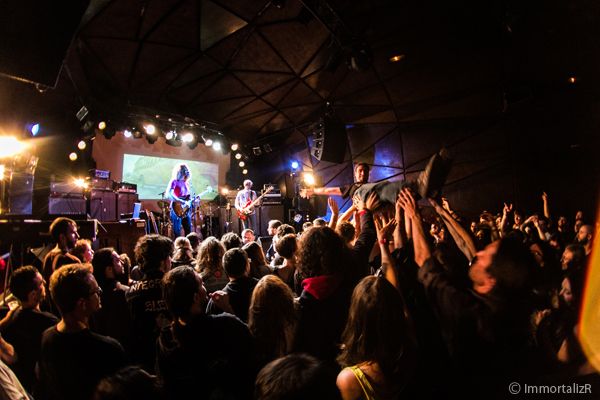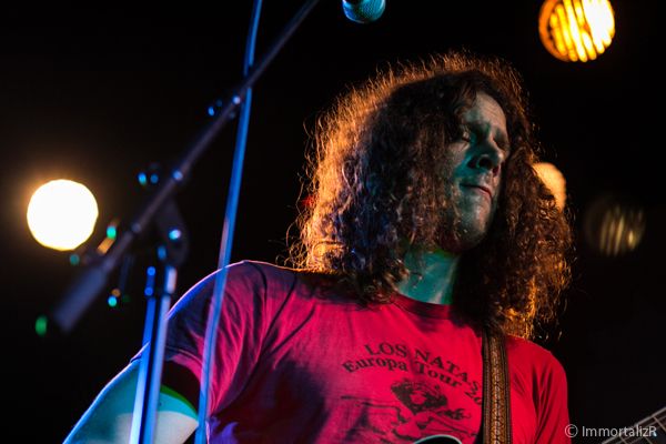 Seul point négatif, l’absence totale de communication avec le public. Certes, ce style ne rime pas forcément avec slam endiablé et camaraderie, mais quand même, un peu de parlotte ne fait pas de mal. On avait l’impression de leur faire peur… Tant pis. Bref, un set d’une heure passé en 5 min, les yeux fermés et l’esprit loin, très loin… Une petite bière histoire de se remettre de ses émotions, et on est parti pour 3 heures de show, non-stop, de Colour Haze !