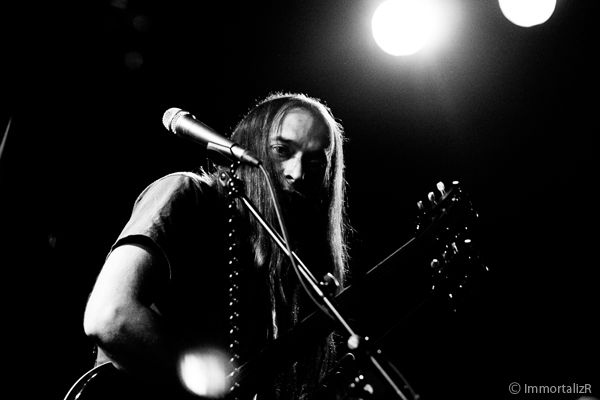 Au fur et à mesure des albums, les Colour Haze se sont de plus en plus tournés vers l’aspect mélodique de leur musique, troquant un son plus lourd à la Black Sabbath pour des thèmes plus enlevés. Pour ce concert, les allemands Stefan Koglek (chant, guitare), Manfred Merwald (batterie) et Philipp Rasthofer (basse) ont mélangé anciens et nouveaux titres, et ne se sont pas cantonnés à faire la promo de leur nouvel album She Said. Pour preuve, le show s’ouvre avec Aquamaria, titre phare du groupe présent sur l’album Tempel (2006), véritable pépite de 8-9 minutes. De quoi se mettre dans l’ambiance. Oui, Colour Haze c’est psyché, mais il y a de l’énergie à revendre. On vous le disait, une tension. Et puis, dans un show de 3 heures, il y a le temps de revenir sur une bonne partie de la discographie, y compris l’album All, qui pour moi est le plus prenant, le plus abouti, pour l’instant du moins. Si pour beaucoup d’artistes 3 heures seraient trop, Colour Haze ne se perd jamais dans l’indigeste, alternant moments calmes et riffs plus énergiques dans une setlist équilibrée. Et rien que pour ça, chapeau… Bon, par contre, le light-show promis n’était pas vraiment à la hauteur de nos espérances… Des images simplistes et datées projetées sur une toile blanche, on aura fait mieux.