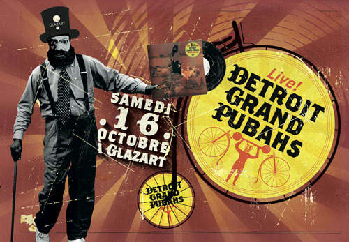A l’occasion de la sortie prochaine du quatrième album des Detroit Grand Pubah,le duo électro-funk originaire de Détroit serra en Live à Glazart le 16 octobre 2010 en compagnie du trio de DJs parisiens Perfect Loosers et du fondateur et animateur des soirées Mort aux Jeunes, l’oiseau de nuit qu’on appelle Crame …
