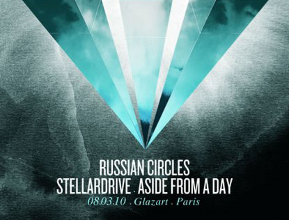 Avis aux amateurs de Post-rock, le lundi 8 mars 2010, Glazart & Kongfuzi Booking se sont associés pour organiser un concert exceptionnel regroupant les américains de Russian Circles, ainsi que les français de Stellardrive et d’Asidefromaday. 3 groupes, trois approches différentes du post-rock pour une soirée thématique comme il s’en fait trop peu !
