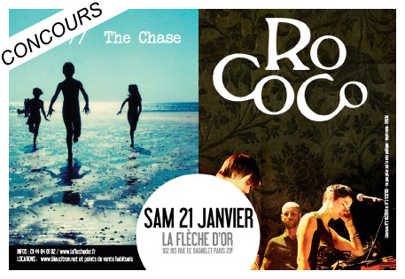 6 réponses sur « Concours – The Chase et Rococo – La Flèche d’Or – 21-01-2012 – Gagnez 4 Places »