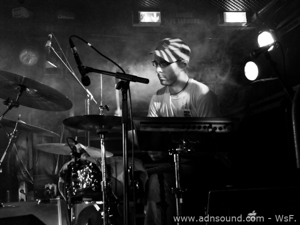 Toujours dans le brouillard. Circonspectement, je m’installe contre le chauffage et patiente. Enfin les musiciens entrent en scène et s’installent. Je compte trois guitaristes (dont un qui manipule un synthé en parallèle), un bassiste et un batteur. Fait rare : le percussioniste semble être le leader. Quelques mots pour nous saluer et ils se lancent.
