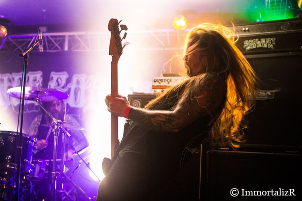 La venue d’Orange Goblin en France est toujours très remarquée (Hellfest, Bordeaux…), je crois qu’ils n’avaient jamais joué à Paris. C’est donc avec entrain que le public s’est empressé de revenir la bière bien pleine dans le sauna. Ce que l’on adore avec ce groupe c’est le sourire très marqué, la communication, la fraternité, ces valeurs perdues que l’ont vient chercher à la force des coudes dans un fosse bondée. La départ est lancé avec Scorpionica, titre issu de l’album The big black, morceau très blues avec des teintes psyché parfait pour se chauffer le cou en attendant la déferlante. The Filthy & the Few qui définie l’essence même du groupe, un son très accrocheur qui colle très bien à une bande son de road movie americain. On retrouve un rythme faisant penser au Sludge de EHG sur Made of Rats, titre très lourd des londoniens. Le groupe finira par faire 2 rappels Quincy the Pigboy et le génial Red Tide Rising sorti de leur dernier album.