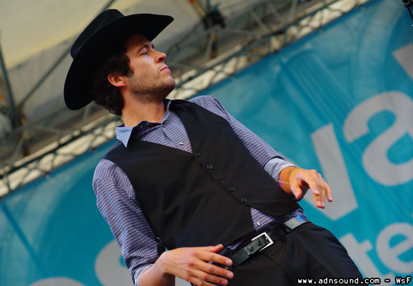 Ce fut le groupe Coming Soon qui ouvrit le bal distillant un mix pop/rock voire country (très sympa le chapeau cow-boy et le petit gilet porté par le chanteur Howard Hughes). Un groupe qui pourrait apparaître comme assez passe partout si ce n’est le fait que chaque membre est chanteur (y compris le batteur ce qui est suffisamment rare pour être souligné). Pour le reste, on est face à un groupe qui a de l’expérience en matière de scène (un beat de batterie puissant, simple et binaire mais des plus efficace), sait communiquer avec son public et mixe les instruments à corde avec les vents … De ce mélange de genre résulte un rock qui semble tout droit sorti de Nashville … pas mal pour des petits français !