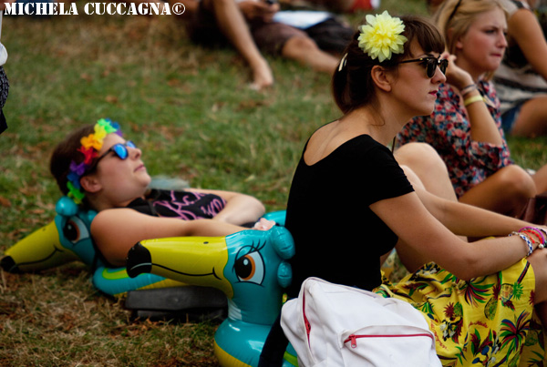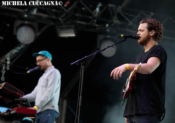 Aaah, Alt-J. Coup de coeur 2012, un album (An Awesome Wave) parfait… Mais un live ultra décevant aux Fnac Live 2012: son brouillon, jeu de scène inexistant. J’ai même entendu un « on a compris pourquoi ils jouent lentement dans l’album… C’est parce qu’ils jouent mal » dépité. Du coup, c’est avec beaucoup d’espérance que je me suis dirigée vers la scène de la Cascade. Une horde de groupies en chaleur les attendaient déjà de pied ferme. Première chose, le son est clairement meilleur, pas comme le festival de larsen des Fnac Live. Ensuite, on a eu le droit à tous l’album, interludes compris, petites respirations bien appréciables. Mais surtout, les Alt-J se sont un peu décoincés ! Ok, pour tenir un stade, il faudra encore un peu de travail, mais que ça fait du bien de voir le bassiste taper ne serait-ce que du pied! Le public, du coup, est ultra-réceptif. Sur Matilda et Taro, la foule chante fort et -presque- juste. Le sourire de Joe Newman, le chanteur, est communicatif. Tout en retenue, il a l’air ému. Tesselate s’est faite encore plus lente et sensuelle que d’habitude, le claviériste s’est régulièrement adressé au public dans un français quasiment parfait, de grosses basses qui tachent ont été déployées sur Fitzpleasure. Nos petits chouchous ont bien grandi.