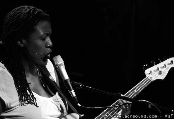 Ilene pour les cordes, accompagnée de deux musiciens respectivement pour les percussions et les claviers. On sent tout de suite que les musiciens sont bons, ils déroulent et on sent bien que les percussions apportent quelque chose de plus au live par rapport à l’album.