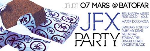 Nos lyonnais de Jarring Effects ont troqué le Rhône contre la Seine le temps d’une nuit au Batofar. Au programme du lourd tout simplement avec : Ben Sharpa & Pure Solid, Squeaky Lobster, Mat3r Dolorosa, Ruby my Dear, Metastaz, Stazma the JungleChrist et Vincent Black !