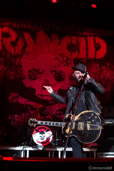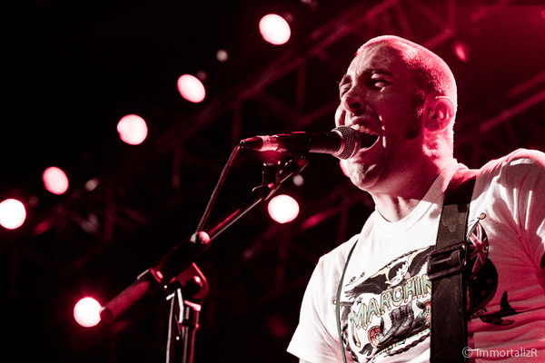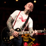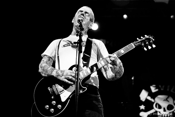 La foule compacte, composée de punks à crêtes et perfectos à clous, tatoués jusqu’aux oreilles, se masse dans la fosse du théâtre pour être aux premières loges de ce que tous espèrent être le grand retour. Rancid, piliers du punk période Epitaph, fêtent en 2012 leur vingt ans d’existence et ils comptent bien en découdre avec les Parisiens pour leur montrer qu’ils en ont encore sous le pied. Pas de temps à perdre avec de longs discours, dès l’entame, Branden Steineckert martèle les fûts, Matt Freeman sort ses grosses lignes de basse, Lars Frederiksen et Tim Armstrong se renvoient la balle, tantôt au chant, tantôt à la guitare. Les titres s’enchaînent, défilent aussi rapidement qu’un morceau de Crass, l’effervescence se fait de plus en plus sentir. La température monte en même temps que le taux d’alcool dans le sang et le pogo n’en finit plus. Les sept albums studio du groupe vont être balayés, le tout avec une énergie sans borne. Toujours mélodiques en sachant rester agressifs, Rancid ne déméritent pas ; les fans de la première heure seront comblés car les Américains gardent quelques bons restes en ce qui concerne le street punk.