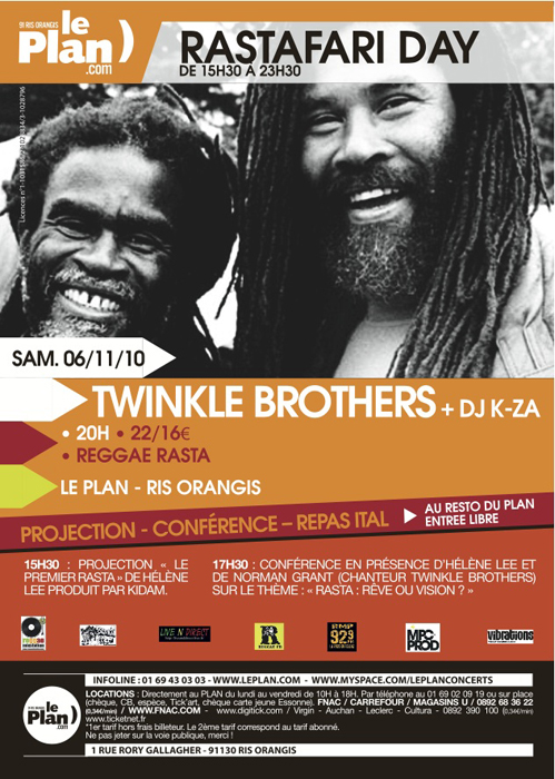 17h30 : conférence intitulée , « Rasta, rêve ou vision« , avec Hélène Lee et le chanteur des Twinkle Brothers Norman Grant.