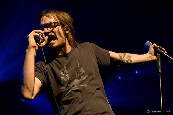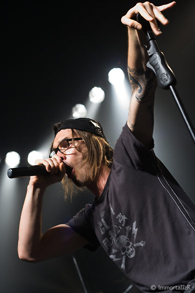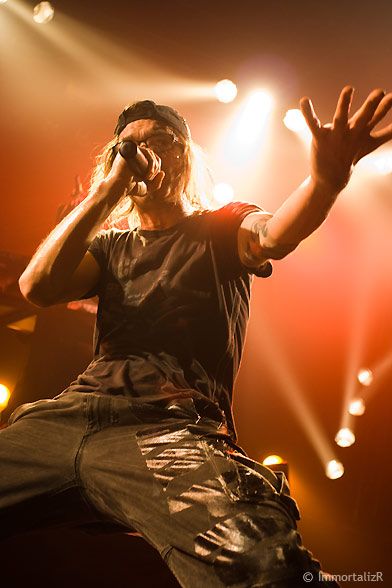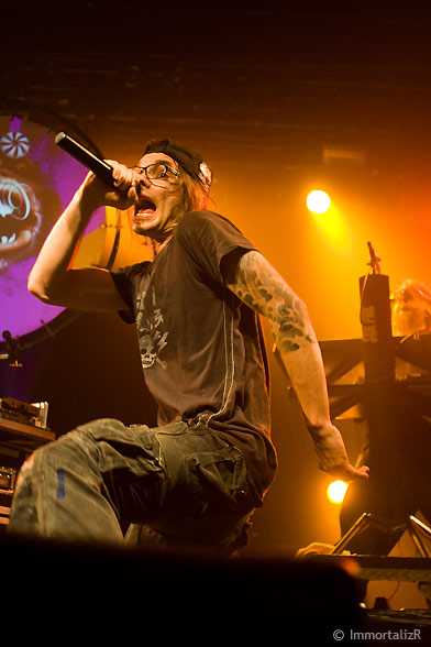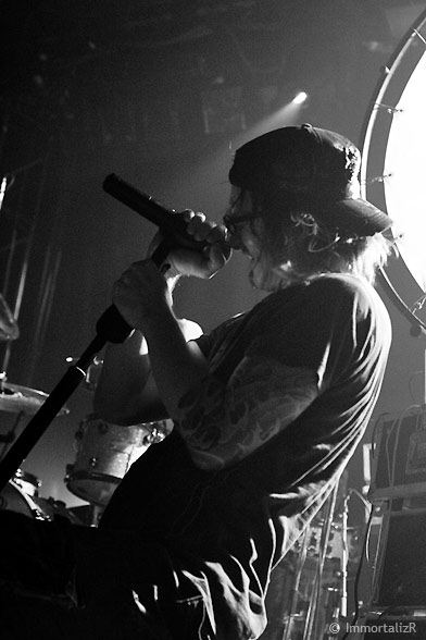 C’est parti les primates enragés sont lâchés sur « twisted mind » et « te gusta me » au rythme assidue faisant monter la température de plusieurs degrés. Les membres du groupe sont pris d’étranges convulsions rythmées avec la musique, Frah le chanteur pousse même le vice jusqu’à grimper sur les enceintes géantes de l’Élysée.