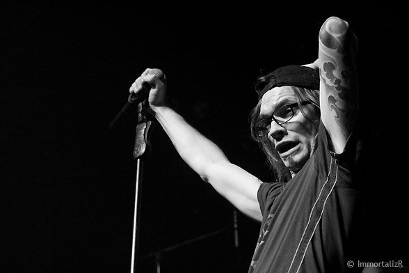 A ce stade du concert il devient difficile de ne pas perdre quelques goutes de sueur, tellement l’atmosphère est humide et chaude. Frah essaye de rafraichir la salle à coup de jet d’eau sans trop d’espoir vu l’incendie qui consume l’Élysée ce soir. Les pogos et autres slams sont lancés ce n’est plus la peine d’essayer de les arrêter.
