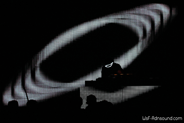 Ces derniers, synchronisés sur sa table de mixage génèrent des animations évoluant au rythme du flot de basses épaisses qui jaillissait des enceintes du Bataclan.