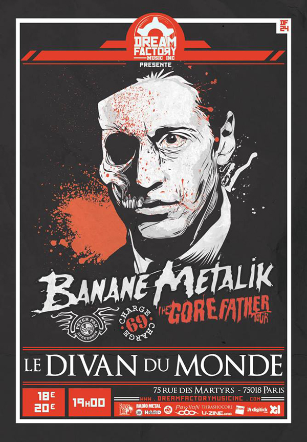 Tremblez Jeunes Mortels ! Après 6 mois passés à hanter les salles de France dans le cadre de leur tournée « Gorefather’s Tour », les Bretons de Banane Metalik reviennent présenter leur gore’n’roll pour deux dates évènements à Paris et Lyon. Sans aucun doute, ils nous offriront un show digne des films d’horreurs les plus kitch, grâce à tous les artifices habituels (maquillage ensanglanté, décors terrifiants, gogore danceuses,..). Il serait réducteur de ne résumer le combo rennais qu’à un grand carnaval grand-guignolesque, puisque leur punk survitaminé réveillera toutes les momies qui se presseront au Divan du monde ou au CCO.